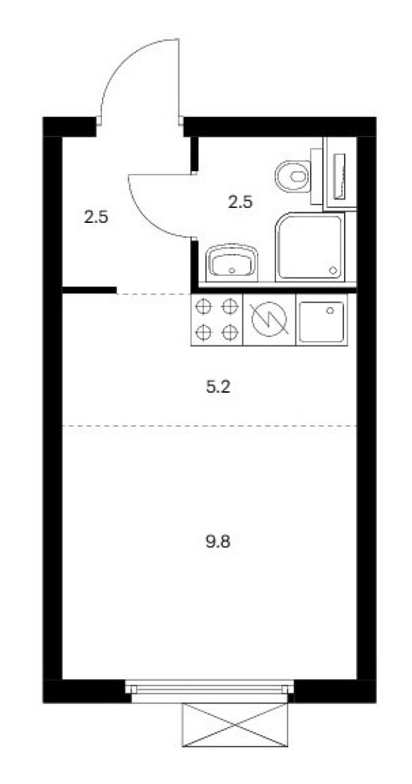 Планировка студии 25,5