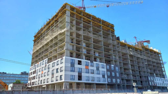 Проект новостройки включает 15 жилых корпусов комфорт-класса высотой от 17 до 33 этажей, возводимых по технологии сборно-монолитного железобетонного каркаса со стенами из крупных каменных блоков и панелей. Другими словами, дома строят из трехслойных утепленных бетонных панелей, которые «нанизывают» на монолитный бетонный каркас. Панели поступают на стройплощадку со вставленными застекленными оконными конструкциями и с отделкой из клинкерной плитки. Панели изготавливают на собственных предприятиях девелопера, что обеспечивает не только высокое качество, но и высокую скорость строительства.