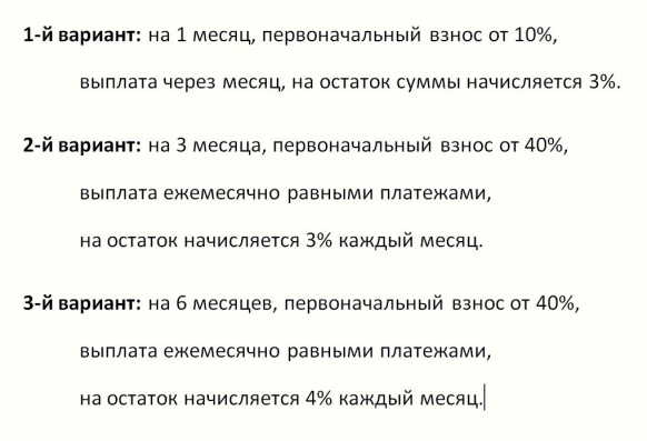 Можно также получить рассрочку на следующих условиях: