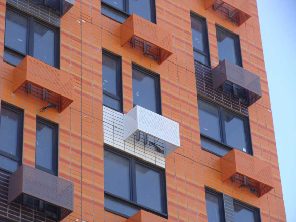 Балконы или лоджии проектом не предусмотрены. Зато предусмотрены корзины за окном для внешнего блока кондиционера. А еще подземный паркинг и детский сад.