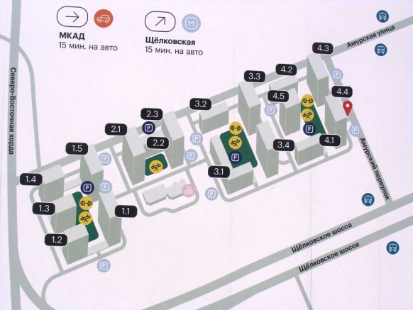 На автомобиле к новостройке можно проехать по Северо-Восточной хорде, Большой Черкизовской улице или Щелковскому шоссе.