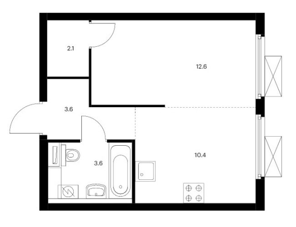 Однокомнатные квартиры располагают входной зоной площадью от 3,6 до 9,2 кв.м. (с учетом внутреннего коридора), совмещенным санузлом площадью 3,6 кв.м., кухней площадью от 10,4 до 18,3 кв.м. и спальней площадью от 10,7 до 13,6 кв.м. Иногда встречается гардеробная площадью 2,1 кв.м. В некоторых вариантах планировок стена между кухней и спальней построена частично, что приближает формат квартиры к евростандарту.