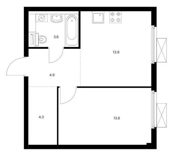 Планировка однокомнатной квартиры 36,1