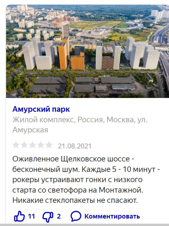 Недостатком может стать близость двух крупных магистралей - Северо-Восточной хорды и Щелковского шоссе. На это обращают внимание пользователи Интернета.