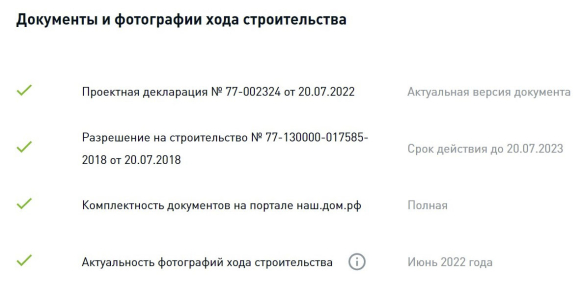 На сайте наш.дом.рф есть текстовое упоминание о том, что разрешение на строительство действительно до июля 2023 года, но документального подтверждения этой информации на данном сайте нет.