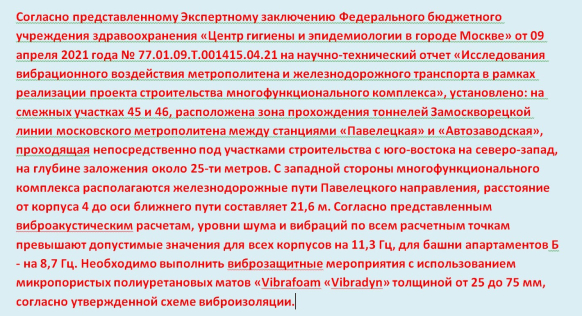 Есть и еще один нежелательный параметр – повышенный уровень вибрации почвы находящегося непосредственно под жилыми корпусами подземного тоннеля для поездов Павелецкого направления метрополитена. Застройщику даже предписано при разработке строительной документации усилить виброзащитные мероприятия в подземной части здания.
