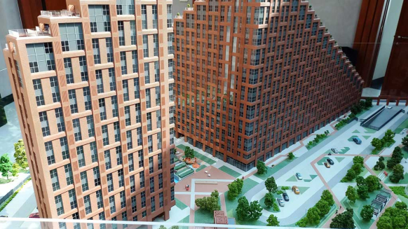 Полноформатный макет установлен в фойе офиса. Он в полной мере передает очарование жилого комплекса и электрифицирован таким образом, что можно включить свет именно в той квартире, которая вас интересует.