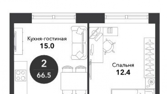 | Двухкомнатная | 54,5 – 77,6 | 30 255 029 – 40 962 887 | 555 138-527 872 |