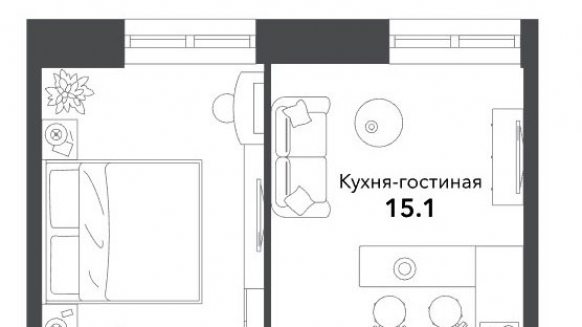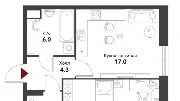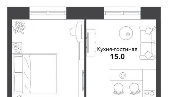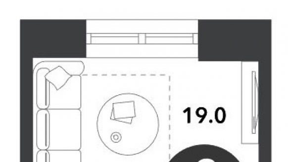 Планировка апартаментов предельно незамысловата. Входная зона площадью не более 3,0 кв.м., совмещенный санузел площадью от 3,6 до 3,9 кв.м. и универсальное помещение площадью от 19,0 до 22,5 кв.м. Все.