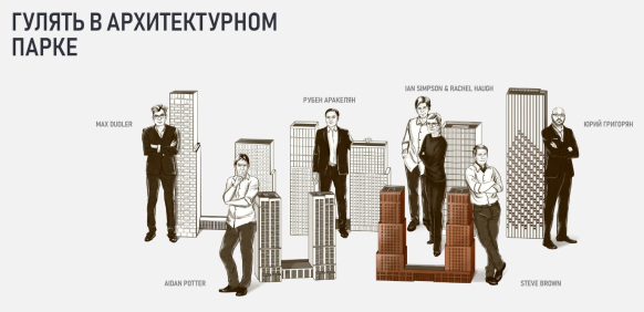 Зданиям даны имена, взятые от названий цветов. Их проектировали архитекторы с мировыми именами, поэтому за проектом закрепилось определение «архитектурный парк».