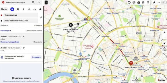 От центра Москвы, например, от станции метро «Охотный ряд», время в пути до ЖК составит около 20 минут (расстояние 4,4 километра, двигаться удобно по Тверской и 1-й Тверской-Ямской улицах).