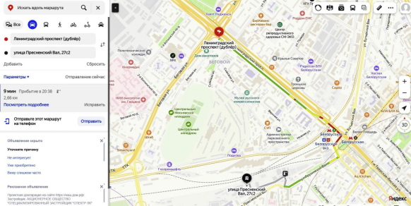 От Третьего транспортного кольца (участок улицы Беговой) до ЖК по Ленинградскому проспекту всего 2,6 километра, это расстояние можно проехать на автомобиле за 10 минут.