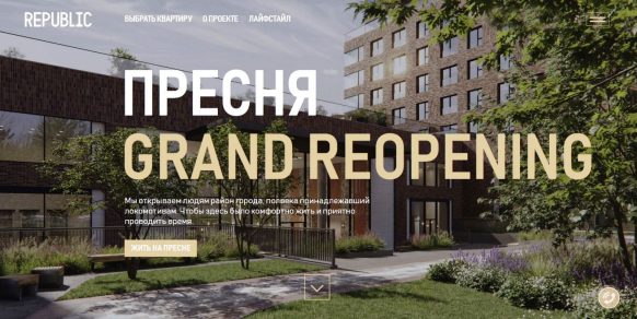 Сайт новостройки https://republic.forma.ru/ яркими красками рисует преимущества жизни в элитном комплексе.