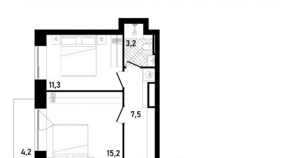 В однокомнатных квартирах присутствует входная зона площадью от 3,2 до 5,2 кв.м., совмещенный санузел площадью от 4,3 до 5,2 кв.м., кухня площадью от 15,4 до 30,8 кв.м., спальня площадью от 11,3 до 18,7 кв.м. Обращает на себя внимание идея проектировщиков зонировать спальное помещение путем установки укороченной перегородки. Так в спальне появилось подобие гардеробной. В однокомнатных квартирах встречается гардеробная площадью 2,0 кв.м. и балкон площадью 4,2 кв.м. В некоторых вариантах в кухне имеется два окна.