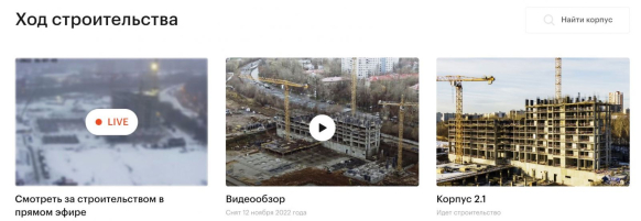За ходом строительства можно наблюдать в реальном времени через онлайн-камеру, можно листать фотоальбом.