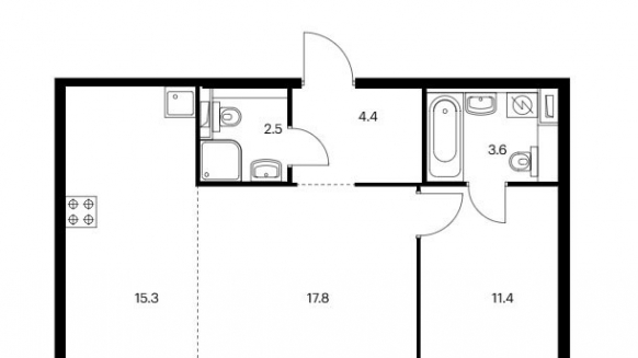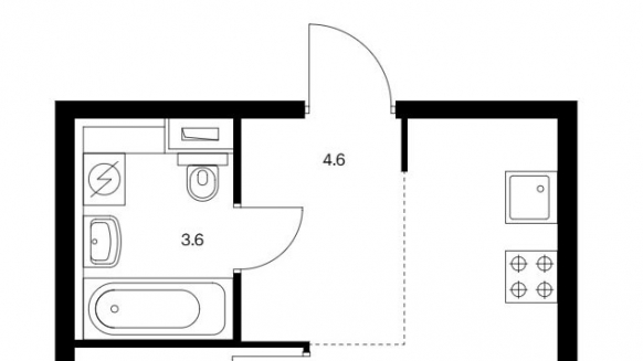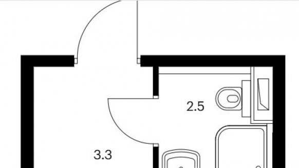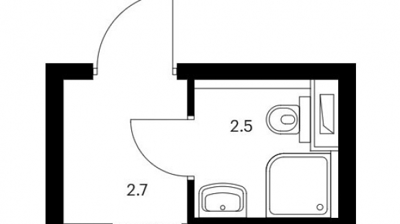 Планировка студий предусматривает входную зону площадью от 2,7 до 3,8 кв.м., совмещенный санузел площадью 2,5 кв.м. и универсальное помещение площадью от 14,8 до 17,6 кв.м.