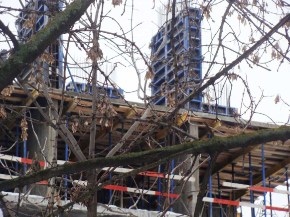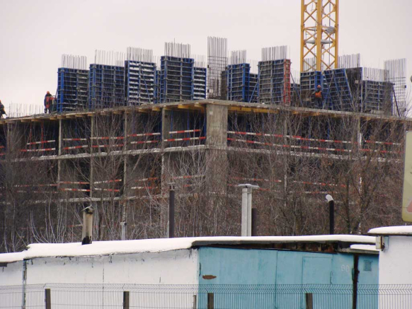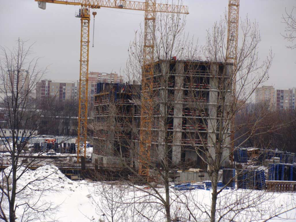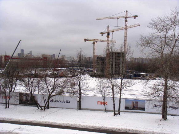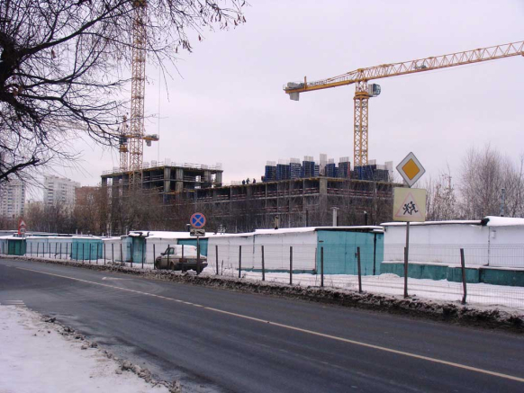 Земельный участок ограничен с севера проектируемым автомобильным проездом, с запада и юга – проектируемой жилой застройкой, с востока Алтуфьевским шоссе. На строительной площадке царит деловое оживление, но по какой-то причине застройщик уже запросил у властей Москвы полугодовое продление разрешения на строительство.