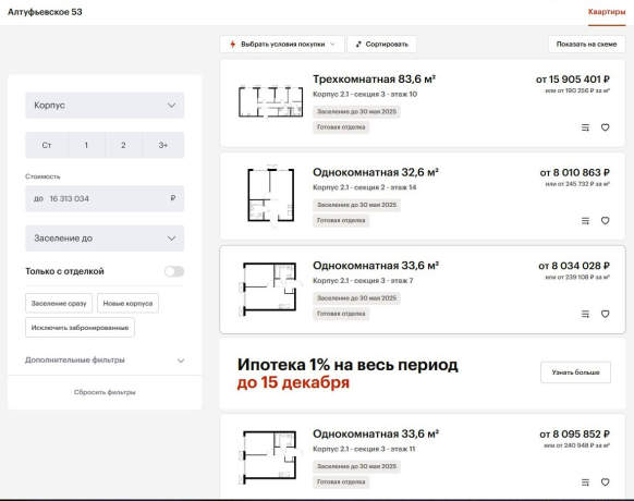 | «Алтуфьевское, 53» | «Алтуфьево» | 68,0 | 13 781 968 | 202 676 | Есть | 2 квартал 2025 г.