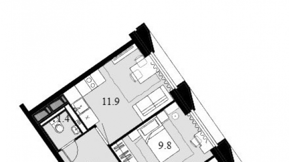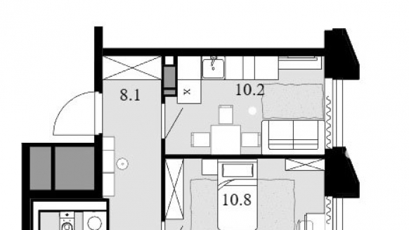 Двухкомнатные квартиры также спроектированы в двух форматах – классическом и евро. Входная зона площадью от 6,2 до 8,1 кв.м., совмещенный санузел площадью 4,0 кв.м. или раздельный с площадью помещений 4,0 и 1,4 кв.м., кухня площадью от 10,2 до 11,9 кв.м. или кухня-гостиная площадью 15,2 кв.м., одна или две спальни площадью от 9,6 до 17,1 кв.м. Расположение комнат одностороннее или угловое, встречаются помещения с двумя или тремя окнами.