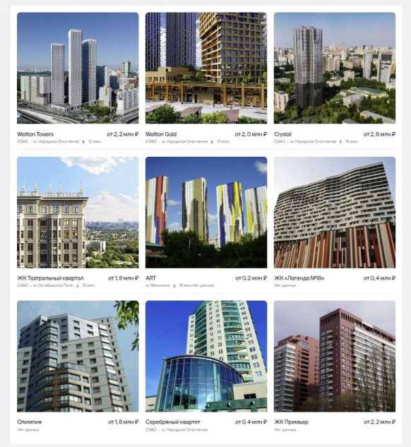 | «Саларьево Парк» | Д. Саларьево | 53,9 | 11 732 520 | 217 672 | Есть | 1 квартал 2025 г. |