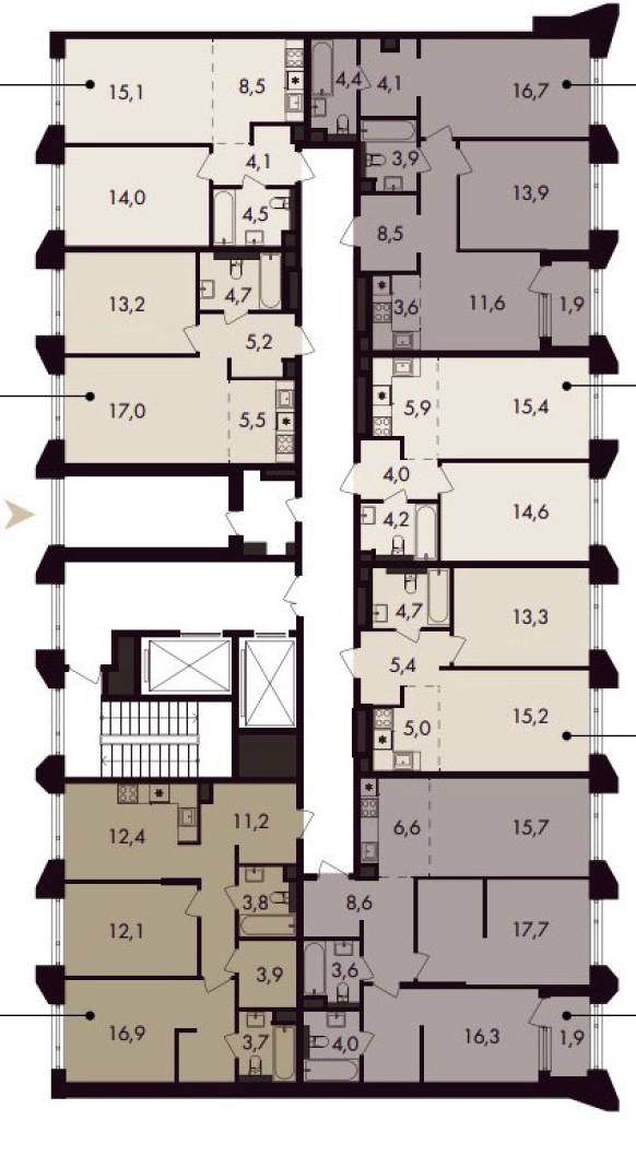 | Студия | 23,9 – 31,2 | 9 679 500 – 12 636 000 | 405 000-405 000 |