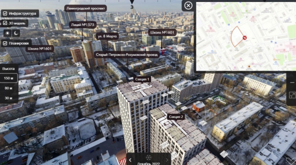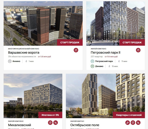 В фотографиях и видеоматериалах показаны окружающие достопримечательности, внешний вид зданий, интерьеры входных групп и даже виды из окон будущих построек.