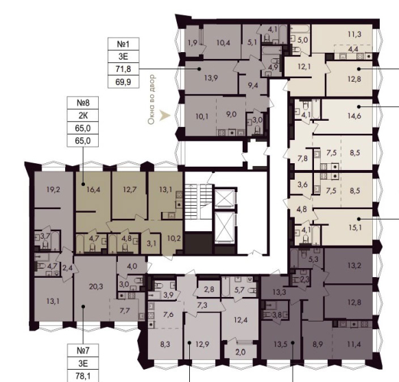 На продажу выставлены квартиры-студии, одно-, двух-, трех- и четырехкомнатные квартиры площадью от 23,9 до 109,6 кв.м., всего более 130 планировочных решений. Здесь встречаются квартиры классической и «евро» планировки с мастер-спальнями, несколькими санузлами, с витражным остеклением и окнами в ванной.