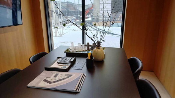 Там вы увидите миниатюрный макет жилого комплекса «Портлэнд» и получите исчерпывающую консультацию по способам и возможностям покупки квартиры в ЖК.