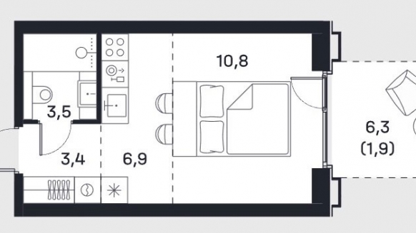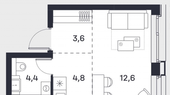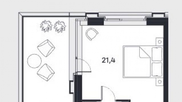 В планировках студий предусмотрена входная зона площадью от 3,4 до 3,6 кв.м., совмещенный санузел площадью от 3,5 до 4,4 кв.м. и универсальное помещение площадью от 17,4 до 17,7 кв.м. В некоторых квартирах приятным бонусом служит терраса площадью 6,3 кв.м.