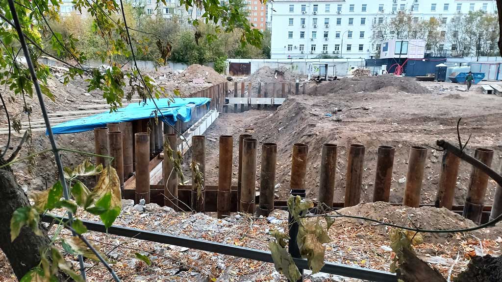 Ранее на территории располагался складской комплекс с сооружениями 1955 года постройки. Все это застройщику пришлось сносить, а существующие теплосети перекладывать.