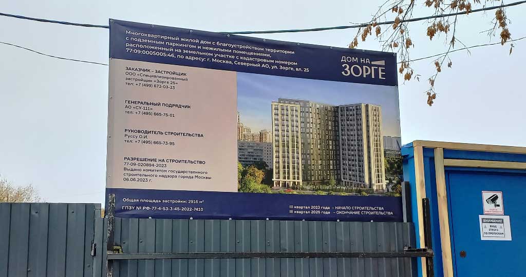 Строительство ведется по адресу Москва, Северный административный округ, улица Зорге, владение 25.