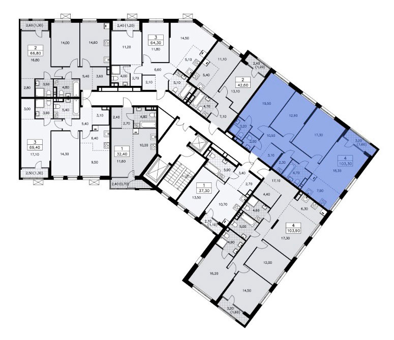 В продаже квартиры – студии, одно-, двух-, трех-, четырех- и пятикомнатные квартиры площадью от 24,4 до 159,9 кв.м.