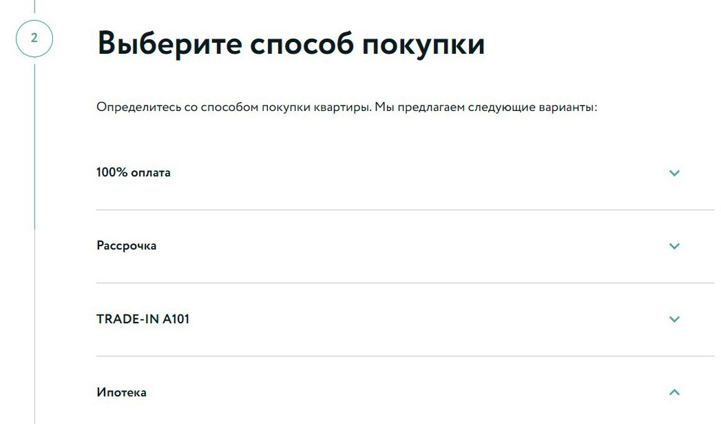 Способы покупки вариативны: 100% оплата, ипотека, рассрочка, трейд-ин (продажа застройщику имеющейся квартиры с счет оплаты за новую). Ряд ипотечных программ поддерживается застройщиком, что делает их еще более выгодными для покупателей.