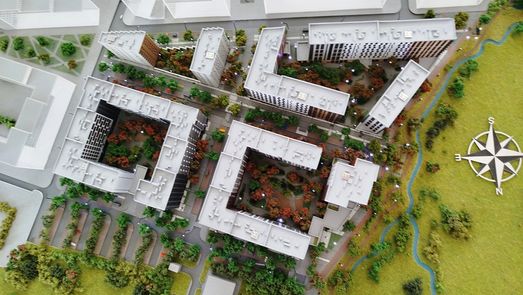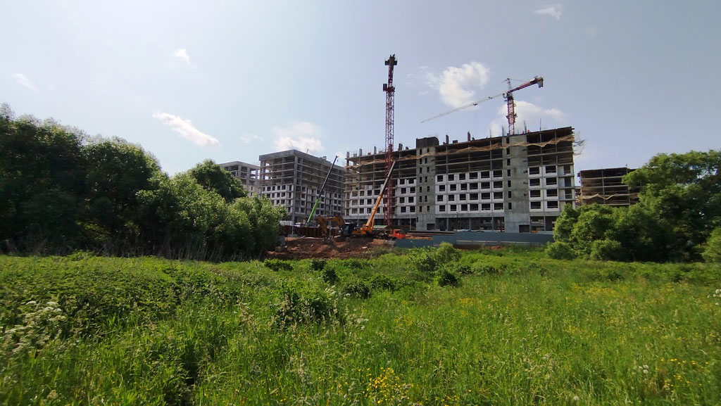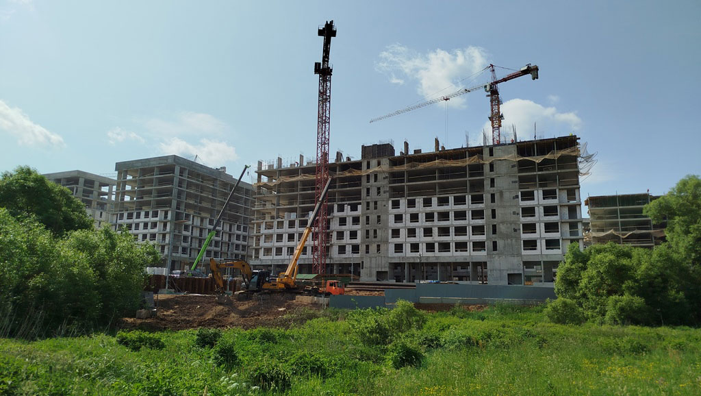 На земельном участке площадью более 10 гектаров строят жилой комплекс класса «комфорт плюс», состоящий из 14 многоквартирных жилых домов со встроенно-пристроенными нежилыми помещениями и подземным паркингом.