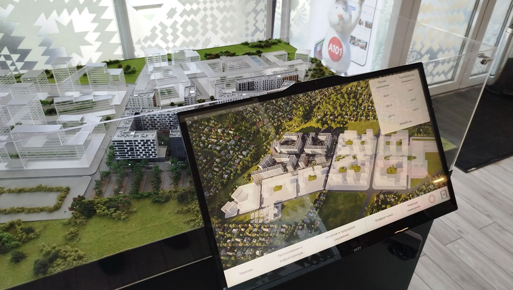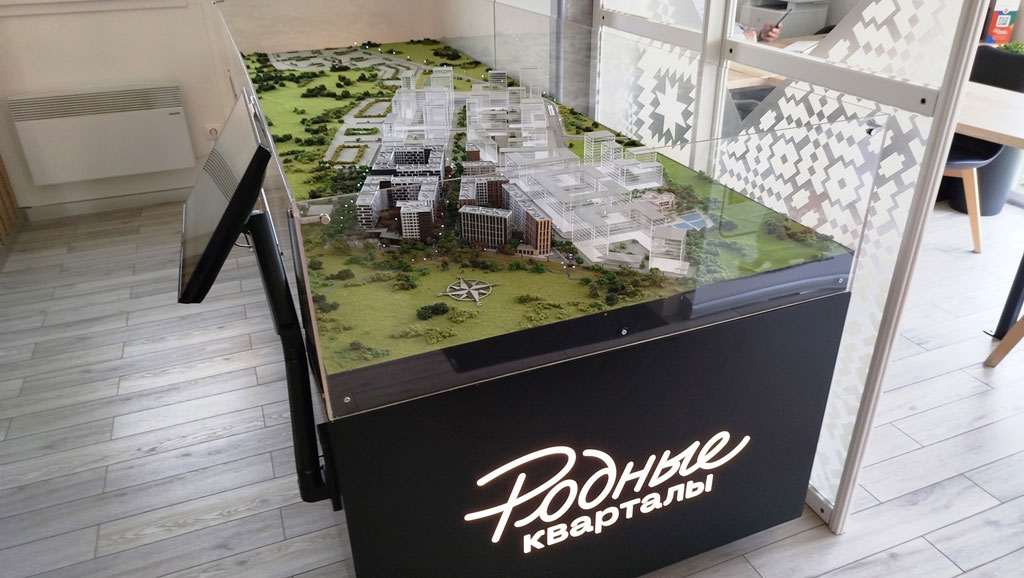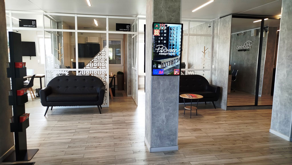 В офисе оборудованы рабочие места менеджеров по продажам со средствами визуализации, установлен макет ЖК. Время работы офиса с 9 до 21 часа ежедневно.