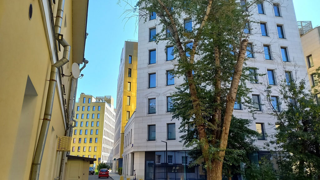 В рекламных материалах любят упоминать высотное здание на Котельнической набережной, которое видно из окон ЖК. Правда, оно видно не из всех. Дело в том, что корпуса расположены довольно близко друг от друга, некоторые - окна в окна. В этом смысле не совсем понятно, почему корпуса-секции называют «особняками». Все-таки в русском языке этим термином обозначается что-то другое. И Кремль, о близости которого также любят упоминать маркетологи, виден далеко не из всех окон.
