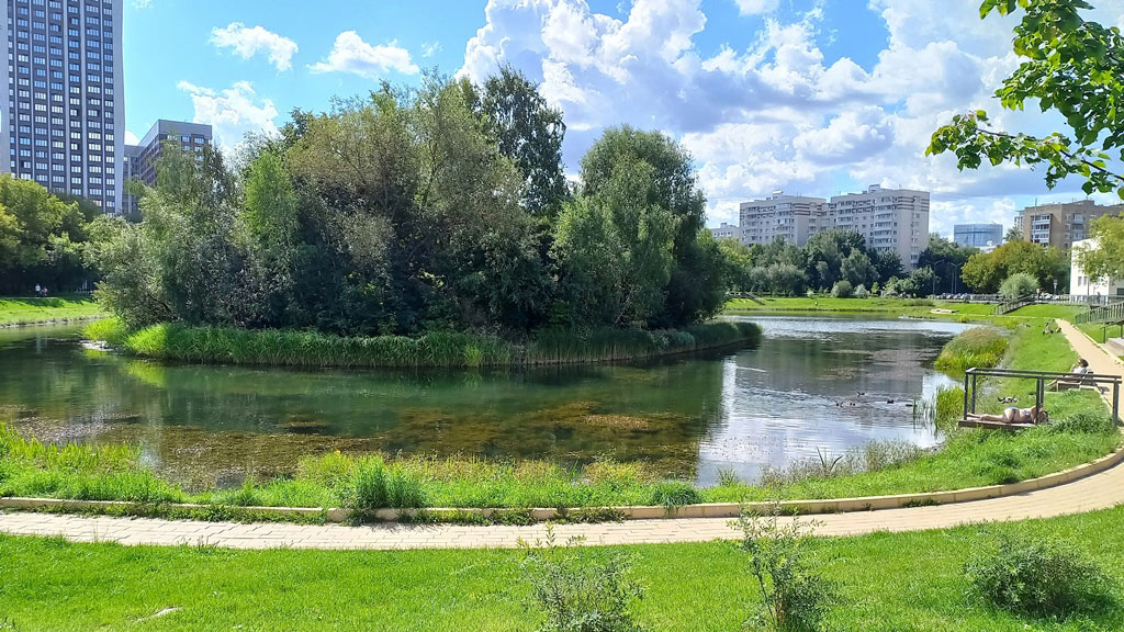 Что и говорить, место замечательное. Наверное, поэтому на другой стороне Капустинского пруда, прямо напротив «Озера» (расстояние по прямой всего 350 метров) выросла 55-ти этажная башня ЖК «АФИ Тауэр». Хватит ли всем места на пляже?