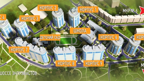 Ладно, давайте лучше микрорайон посмотрим. Выше я показала корпуса и 5, и 6, они имеют самую высокую степень готовности.