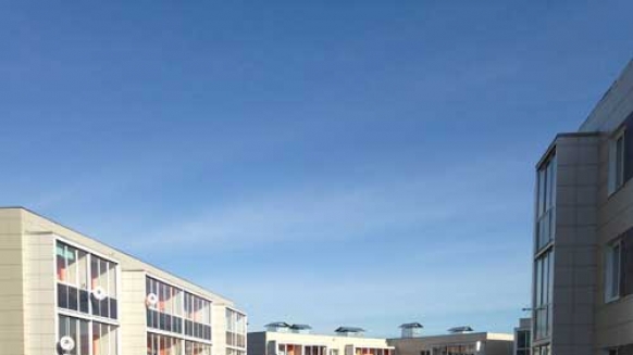 Итак. Мне здесь понравилась только цветовая гамма корпусов. Больше, наверное, ничего. Те же ассоциации с пионерлагерем. Только здесь еще давит теснота территории. Размещенная выше фотография сделана от забора. Противоположная его сторона тут тоже видна. То есть здесь еще добавляются ассоциации с дачным участком. Ну тесно мне, и все тут.