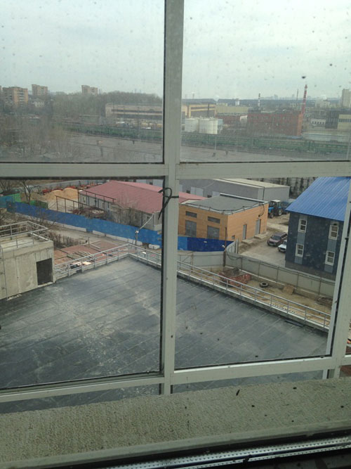 Не упускаем возможности глянуть в окошко через панорамное остекление балкона. Вдалеке как раз видна электричка. То есть можно оценить расстояние до путей.