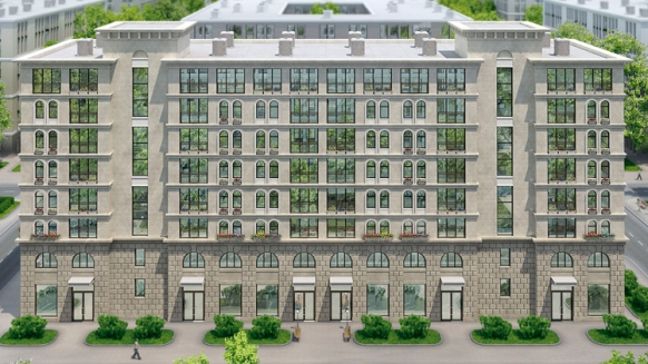 Итак, клубный дом «Николаевский ансамбль» представляет собой 8-этажное здание в стиле осовремененной классики. Проект разрабатывался под руководством двух крупных архитектурных бюро: «Евгений Герасимов и партнеры» и «Speech Чобан & Кузнецов», перед которыми стояла задача создать здание «в лучших традициях классического зодчества Северной столицы». Так, в нём объединились строгие формы, лаконичные цвета, арочные окна, дровяные камины, террасы и витражное остекление. Первый этаж займут коммерческие помещения, а нулевой – подземный паркинг на 32 машиноместа (это по документам, а со слов менеджера на 43).