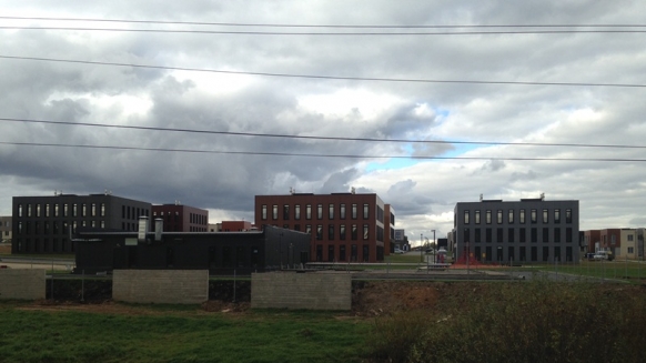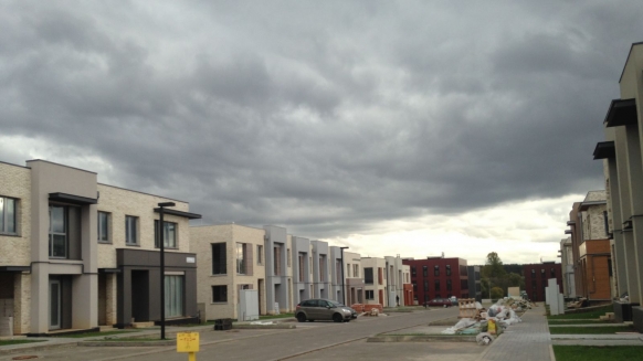 Строительство здесь ведется в 4 фазы. И на сегодняшний день мы можем увидеть завершение первой, более ранний этап которой был освещен моей коллегой в 2013 году. На тот момент в поселке (будем так для удобства называть архитектурный пригород) уже были возведены примерно три десятка коттеджей и 4 блока таунхаусов. Сегодня же мы видим маленький городок, где количество таунхаусов увеличилось раз в восемь, также появились многоквартирные корпуса.