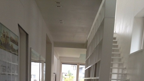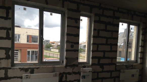 Количество и формат окон хорошо скажутся на освещенности. Однако, учитывая расстояние между домами, этот формат может сказаться и на осведомленности соседей в части бытовых подробностей жильца. Находясь внутри помещения, я обратила внимание на то, что стены и полы здесь достаточно ровные, все сделано аккуратно.