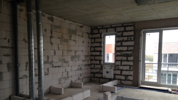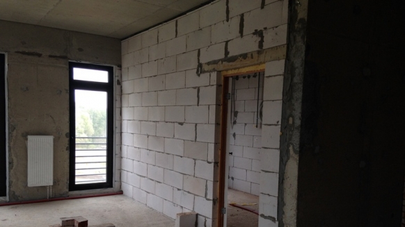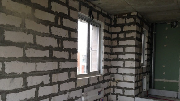 Межкомнатные перегородки в квартире обозначены одним рядом пеноблоков.