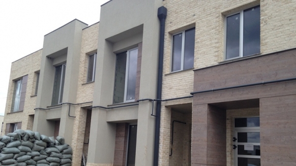 Таунхаусы представляют собой монолитно-блочные строения на ленточном фундаменте. Перекрытия и лестницы – монолитные. Дома, как и коттеджи, оснащены центральным водопроводом (вода из артезианской скважины с системой водоподготовки), канализацией и электричеством. Тепло в доме обеспечивает газовый котел.