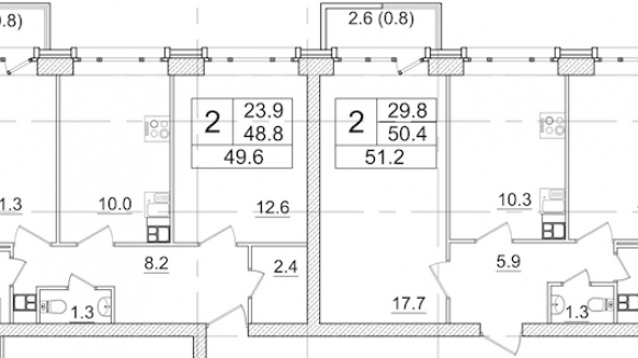 Самые большие квартиры снова отсылают нас к уже увиденным вариантам, но в них, наконец, появляются раздельные санузлы, а кое-где и гардеробные.