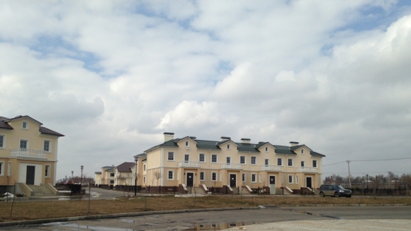 Территория поселка уже обустроена, дома построены, но в глаза бросается отсутствие людей. Лишь у некоторых домов стоят машины. Поселок хоть и сдан год назад, но он почему-то до сих пор не подает признаков жизни. Разве что изредка можно увидеть немногочисленных рабочих.