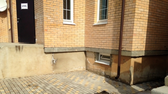 Чего не скажешь о самих домах в поселке. Внешне все выглядит неплохо, но если присмотреться, то становится понятно, что проблемы с подтоплением здесь дейсвительно имели место быть. По крайней мерее мне так показалось, посмотрите на эти подтеки и трещины.