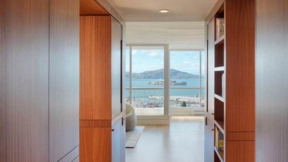 Сейчас активно дизайнерами используется очень разумный прием, когда в качестве перегородок между помещениями ставят не стены, а шкафы от пола до потолка. Таким образом, мы получаем сразу несколько преимуществ: вместительные шкафы для хранения вещей и дополнительное пространство, освобожденное сносом стены.