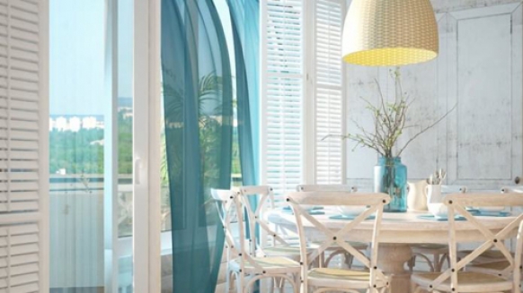 Например, если это одна из ярко запомнившихся поездок на море, то в голове сразу возникает лазурь теплого моря, теплый песок, прохладная белизна побелки домов на юге и яркое солнце. Вот вам и формируется определенная цветовая гамма – теплые песчаные оттенки, белый цвет в качестве общего фона и, в дополнение к ним, лазурный и солнечный желтый.